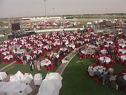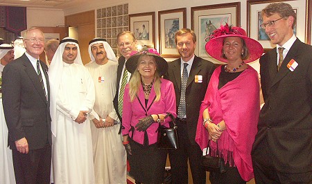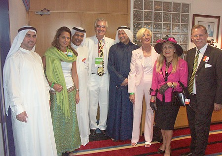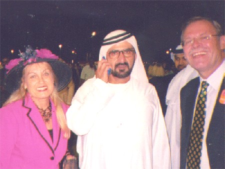Mit einer filmreifen Inszenierung begeisterte das Koenigreich Dubai zum 10jaehrigen Jubilaeum des DUBAI WORLD CUP ueber 60 000 Menschen auf dem Rennplatz Nadja Al Sheba und ein Millionenpublikum vor den Bildschirmen in aller Welt. Bei der Lasershow der Superlative a la Hollywood, grossartigen Paraden von Ross und Reitern im illuminierten Rund vor den Scheichlogen und auch waehrend des Renngeschehens kam es immer und immer wieder zu entfesselten Entzueckungsrufen der "Zeugen dieses koeniglichen Spektakels". ![]() Dubais Koenigshaus, die Geschaeftswelt, die fuehrende Gastronomie und Hotelerie zogen alle Register an Exklusivitaet. In prunkvollen Logen der Maktoums, der Emirate Airline, des Duty Free Dubai, der fuehrenden Tophotels des Scheichtums wurden die nur auf spezielle Einladung anwesenden Gaeste mit Koestlichkeiten quasi ueberschuettet. Lobster und Beluga-Kaviar, erlesene Weine und Champagner wie Dom Perignon gehoerten wie selbstverstaendlich dazu. Mit welcher Herzlichkeit auslaendische Gaeste von den arabischen Gastgebern empfangen und bewirtet wurden, erlebten z.B. der bisherige deutsche Generalkonsul in Dubai Conrad Cappell und Gattin Lilo Cappell, als sie jetzt aus dem Sultanat Brunei an die im Juli 2004 verlassene Wirkungsstaette Dubai zurueckkehrten. Als der eigentliche Regent des Scheichtums, der Erbprinz Mohammed Al Maktoum das deutsche Diplomatenpaar bei seinem Rundgang aufsuchte, nahm Mohammeds Sohn Prinz Rashid (was fuer ein Mitglied der Koenigsfamilie eigentlich undenkbar ist) die Kamera der Cappells in die Hand, um fuer sie ein gemeinsames Foto zu schiessen. Dabei muss eingeraeumt werden, dass es wohl nur wenige deutsche Diplomaten gibt wie die Sympathie-Traeger Lilo und Conrad Cappel, die in so kurzer Zeit derart enge "diplomatische" (vor allem menschliche Kontakte) in den Laendern herstellen, in die sie von der Bundesrepublik entsandt werden. Conrad Cappell hat wie gesagt im Juni 2004 seine Aufgabe als Botschafter der Bundesrepublik Deutschland beim Sultan von Brunei, einem der reichsten Maenner der Welt, angetreten. Lilo und Conrad Cappell haben auch dort bereits, nach so kurzer Zeit, aehnlich enge Beziehungen zu den Honorationen des Landes und zur Herrscher-Familie herstellen koennen wie in den vier Jahren in Dubai.