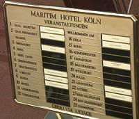 No-one else in and around Cologne provides such generous modern banquet and conference rooms, 21 in number. More than 1,600 persons can take place in the largest hotel-hall which e.g. is used for benefit Galas and the famous carnival meetings. The architectural concept with a 100m long, glass-covered hotel lobby is unique all over europe. Four maritime restaurants next to boutiques and business rooms convey a lively boulevard character to the light- flooded hotel lobby. More than 454 elegant rooms are complemented by several suites. . Highlight of the Marittme is the restaurant "Bellevue" over the roofs of Cologne with a view on the Cathedral and Rhine. On the occasion of the benefit gala "Dress of Pina" german TV-Icon Jean Pütz (Member of the VIP box - www.VIP-Hotels.biz) has affiliated the 5 star Maritime Hotel Cologne in the name of the the "international Association of VIPs" to the illustrious circle of the VIP hotels. VIPs, belonging to the VIP box (with CD@VIP-Club.net-Passeport), obtain preferred treatment like in all other www.VIP-Hotels.biz. The Maritim belongs to the leading hotel chains with 45 enterprises in Germany. The Maritime Group is present all over the wordl, such as in Bali, Djerba, Malta, Mauritius, Riga and Tenerife Tel.0049 221-2027-849 fax 0049-221-2027-826 maritime hotel Koeln reservation [MARITIM_Hotel_Koeln_Reservierung@maritim.de]