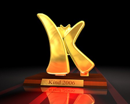 Hand der Initiatoren der Benefiz-Gala Kinderlachen e.V. Christian Vosseler (l.) und Marc Peine den Kind Award International 2006 entgegen |