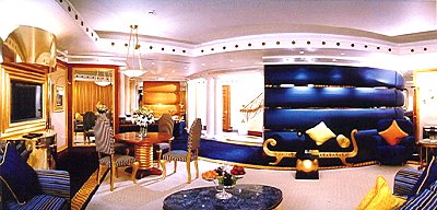 ![]() Das höchste Suitenhotel der Welt. Der Burj Al Arab-Tower Für die Reichsten der Reichen aus aller Welt noch rechtzeitig vor Eintritt in das nächste Jahrtausend ist vor den Toren von Dubai der Millennium-Hotel-Tower, das höchste Suitenhotel der Welt, eröffnet worden. Der Burj Al Arab-Tower, verbunden mit dem inzwischen weltberühmten Jumeira-Beach-Hotel und mit einer Höhe von 321 Metern höher als der Eiffelturm und nur 60 Meter kleiner als das Empire-State-Building, sprengt in vielerlei Hinsicht alle bisherigen Dimensionen von Architektur, Luxus, Gastronomie und Hotellerie. Über die tatsächlichen Kosten des vom Erbprinzen Mohammed Al Maktoum protegierten Projektes kursieren lediglich Gerüchte, von einer bis zwei oder gar drei Milliarden Dollar. Wer den Baukomplex im Detail und die kostbare Innenausstattung zu Gesicht bekommt, mag dies verstehen. Von irdischen Gütern bevorzugte Hotelgäste erreichen den "Sieben/Sterne/Hotel-Giganten", der auf 40 Meter tief in den Meeresboden gerammten Stützpfeiler thront, über einen 280 Meter langen schmalen Verbindungsdamm. Ein technisches Wunderwerk allenthalben, das spätestens bei Eintreffen per Rolls Royce, in der Hotelhalle offenbar wird. Schlicht von einer Hotelhalle zu sprechen, dürfte in diesem Zusammenhang eine weit untertriebene Wortwahl sein. Immerhin würde das berühmte Dubaier Wahrzeichen, das World Trade Center, in voller Größe dort hineinpassen. Natürlich kann der Hotelkönig Al Arab auch per Helikopter auf dem Hubschrauber-Landeplatz on the Top erreicht werden, der noch über dem freihängenden Himmelsrestaurant schwebt. Die 202 Duplex-Suiten von 170 qm bis 780qm Größe sind mit den feinsten Materialien und kostbarsten Stoffen ausgestattet. Wer eine königlich anmutende Nacht im Himmelsschlosshotel des Reiches der Hochwohlgeborenen von Dubai verbringen möchte, sollte zumindest so gut betucht sein, dass die 1700 DM (ca. 3300 DH) für die kleinste und 28.000 DM für die größte Suite für ihn Peanuts sind. Schließlich kostet alles andere Extra, sei es z.B. der Helikopter/Service, der Rolls-Royce-Shuttle, völlig abgesehen von den Bewirtungskosten in einem der Luxus-Restaurants with "Goldfinger-Gedecken". Das wohl Spektakulärste dürfte wohl das Underwater-Seefood-Restaurant sein, das per U-Boot erreichbar ist. ![]() Königliche Suite im Burj Al Arab ![]() |